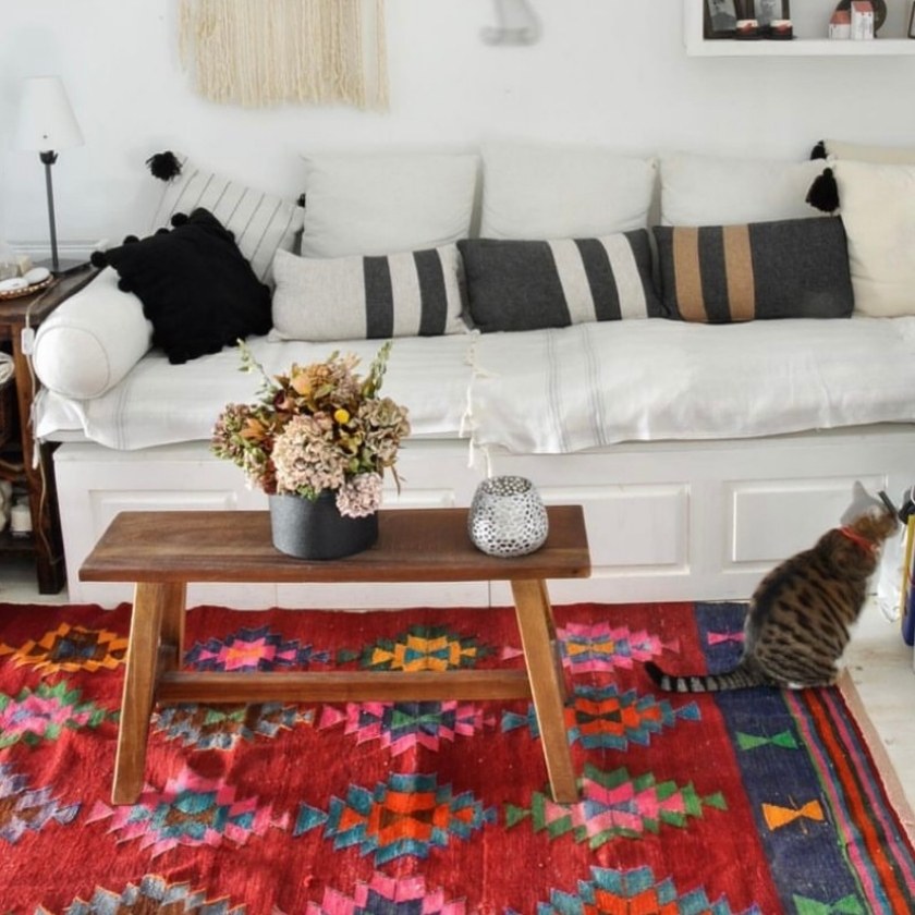 Using ancient Turkish techniques, our rugs are fashioned from original handmade and organically dyed wool and cotton blend vintage Turkish rugs. The edges are the hand-sewn and we are responsible for the shaving, bleaching, coloring, over-dying, and drying of our reworked rugs. We soak all of our rugs in pools of boiling water with only TÜV approved textile dyes so you can rest assure they are of the highest and safest quality.