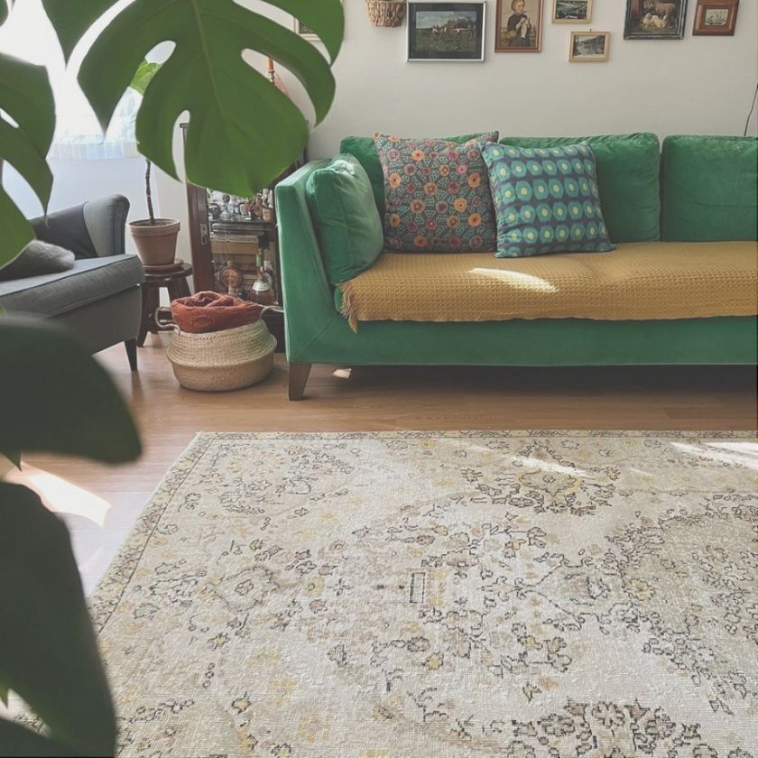 Some of our vintages are in original colors. Some ofthem just have been dried under the sun after shaving and washing, and some ofthem were colored after shaving and washing. This vintages which are dyed incolors that are up to date and suitable for decoration fashion. You take themto your place in homes with their experiences and stories. Unmatched, but asimilar one is possible. Vintage rugs are especially dyed in popular colorssuch as gray, turquoise, ice blue and aqua green. You can also find neon colorslike fuchsia, green, and pink.