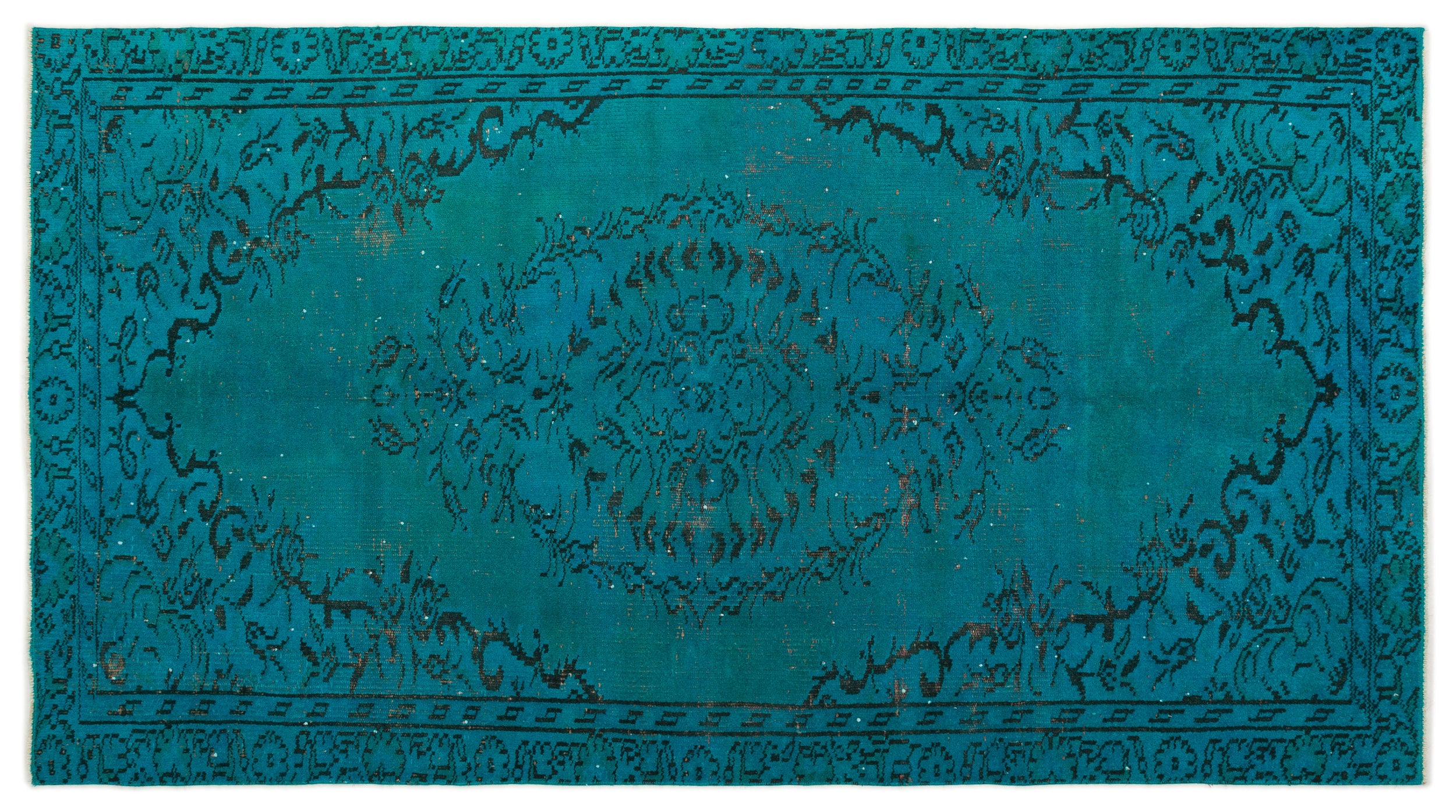 Colored Vintage carpets are produced from older Turkish carpets of at least 40-50 years of age. Each carpet is carefully selected and undergoes a unique process of colour neutralisation before being over-dyed in an exciting new colour. The result is a mix of traditional Turkish carpet design fused with a contemporary Vintage style.Each rug is unique by size and by color.